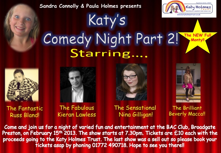 The Katy Holmes Trust are holding a comedy night at the BAC Club, Preston on 15th February. For tickets and information please visit www.katyholmestrust.co.uk