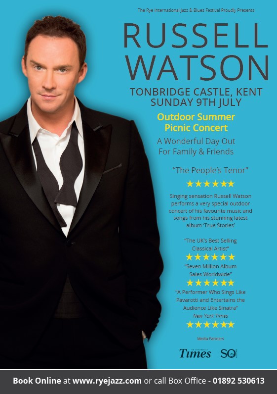 DetailsWe are delighted to announce that Russell will perform a special one off show at the beautiful Tonbridge Castle on Sunday 9th July 2017. Ticket are on sale now – click here Ticket Prices:Front stage ticket: £60.00Lawn ticket: £45.00Children under 5 free admission and children under 16 half price.Wheelchair and disabled access available at the…